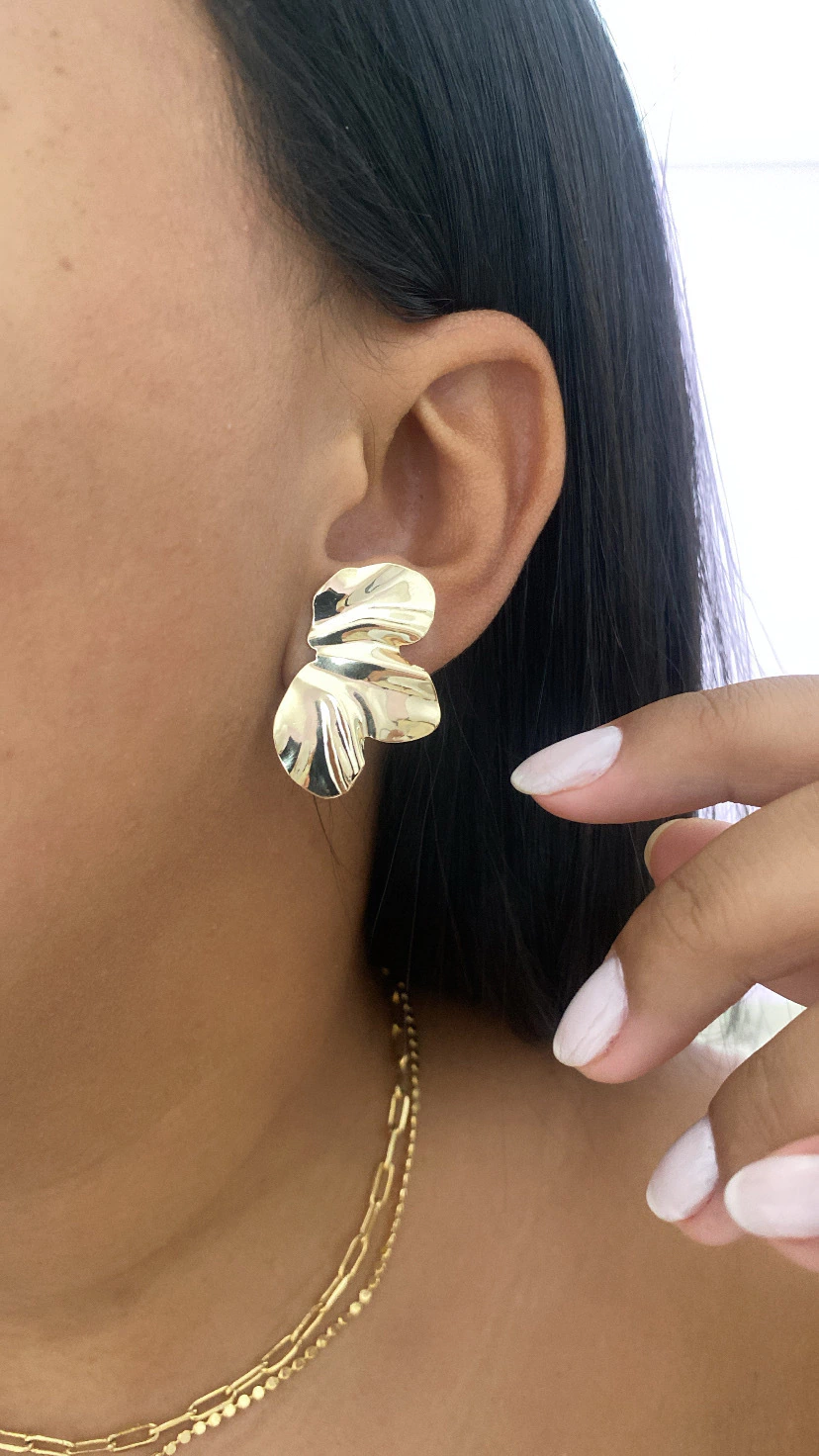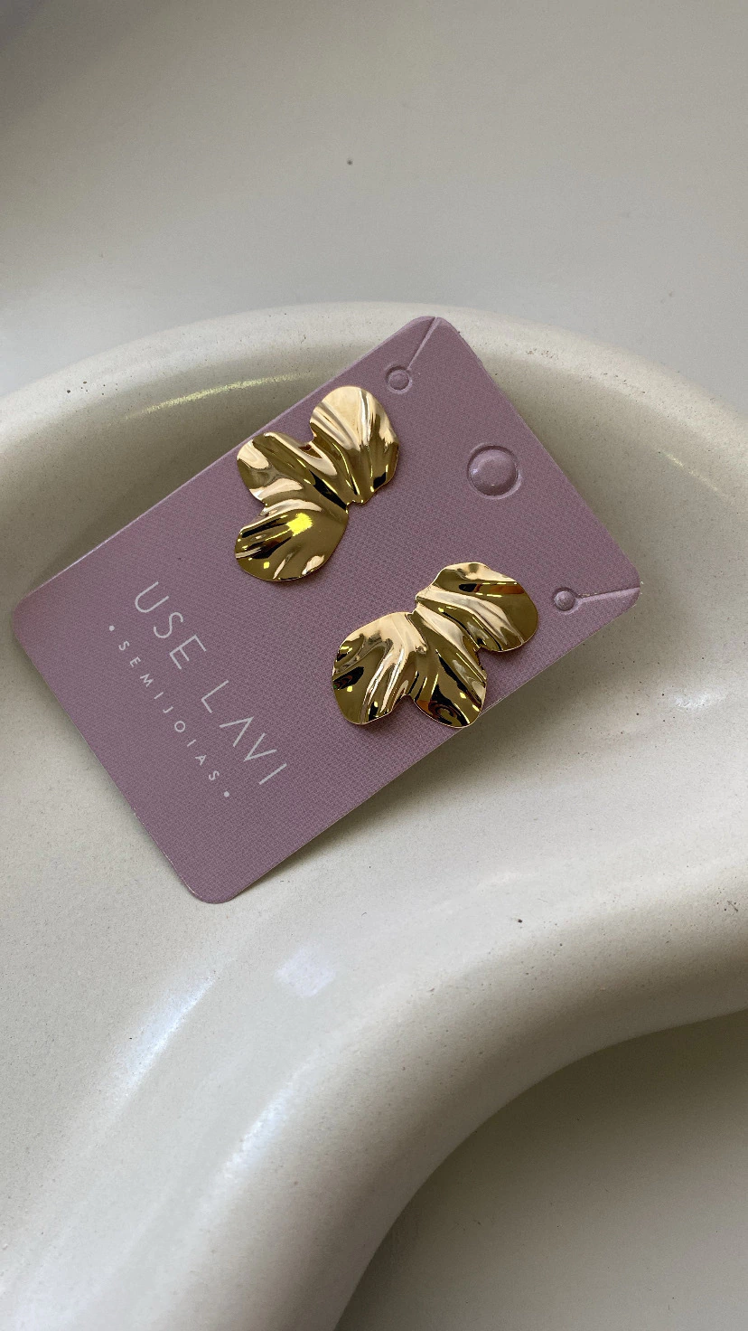 Apresentamos o Brinco Meia Pétala, uma peça leve e sofisticada que vai complementar seu visual com elegância.